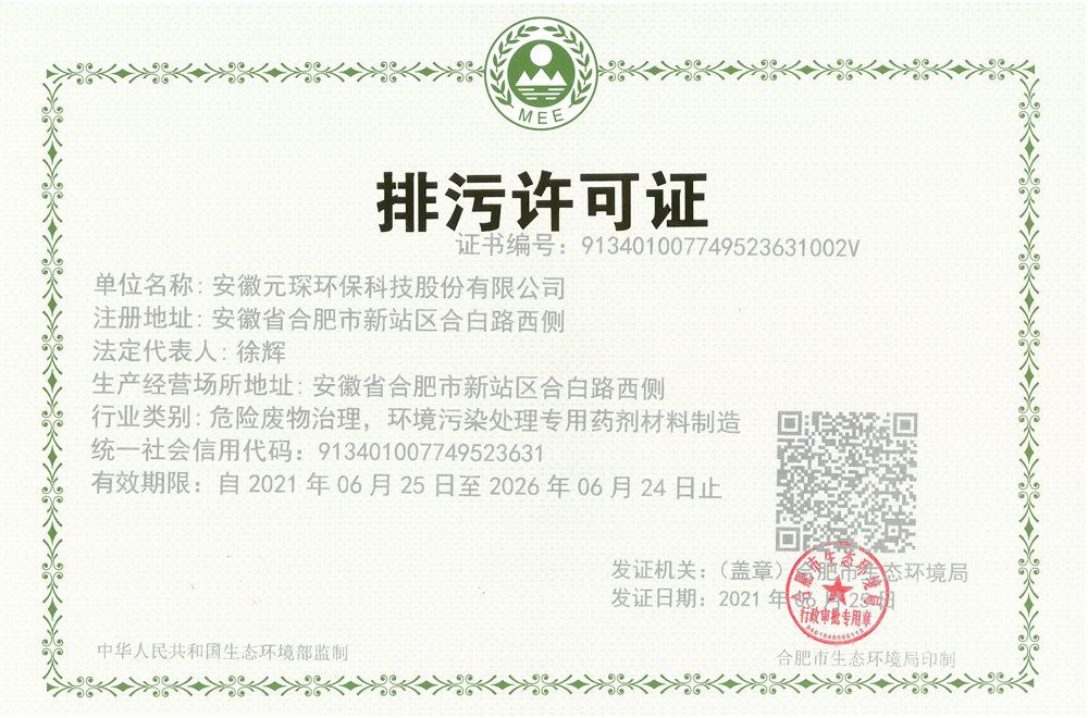 安徽Yy易游体育环保科技股份有限公司排污许可证